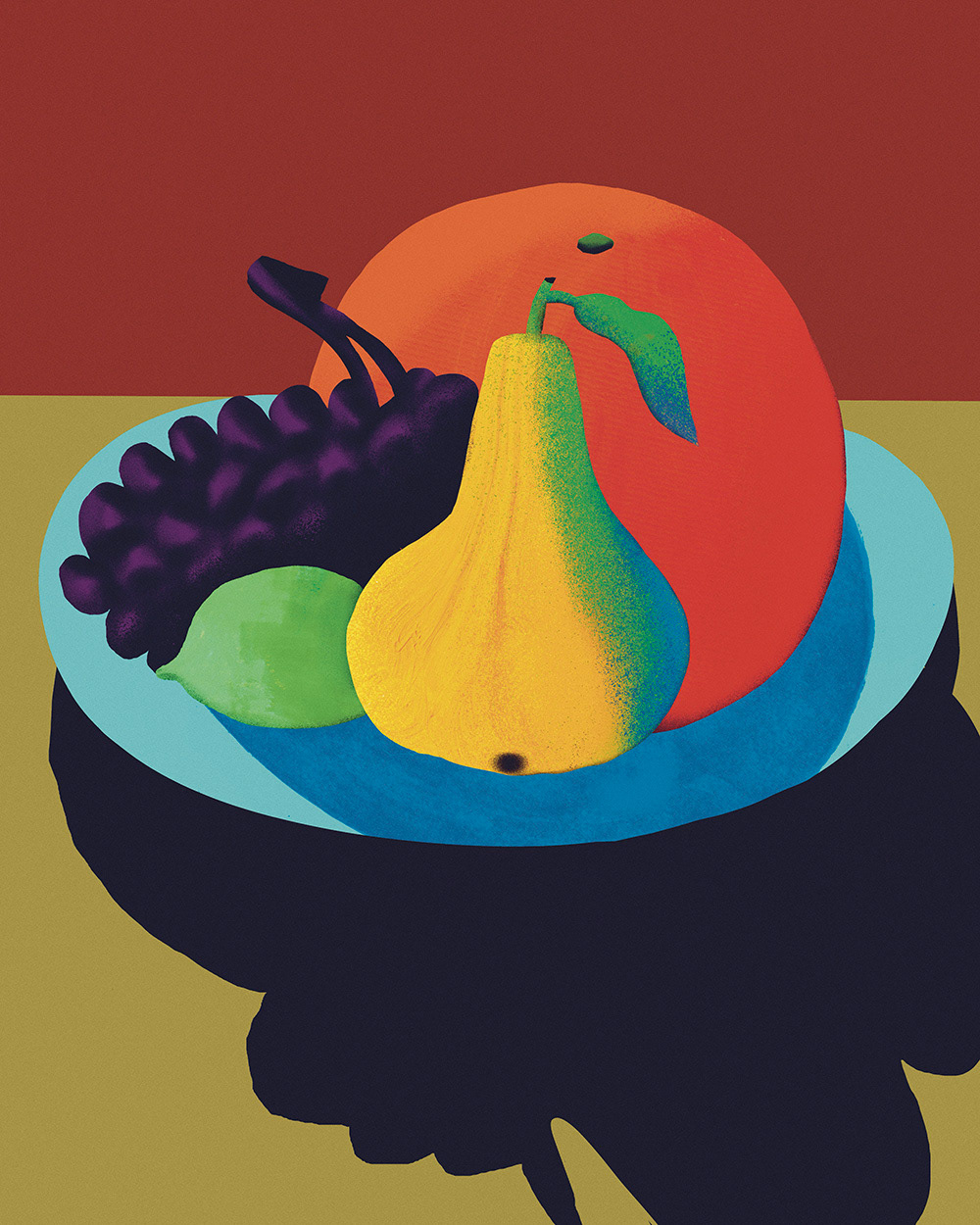 Серія робіт про літо. Про полудневу спеку і темні важкі тіні. Про стиглі фрукти й вологу втому, коли сонце пече, резинка туго стягує волосся, а ти вже не можеш їсти черешні — але все одно їси.
