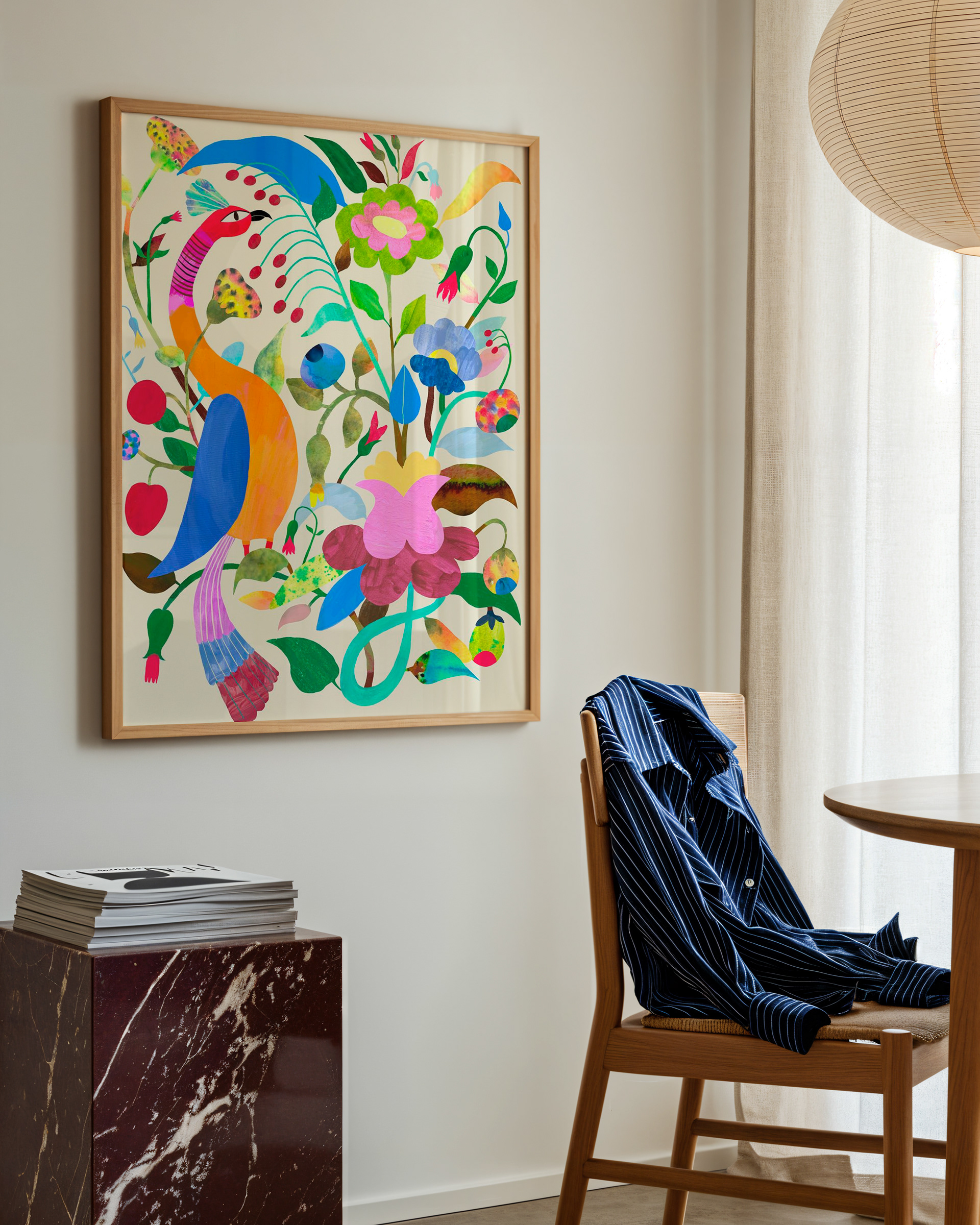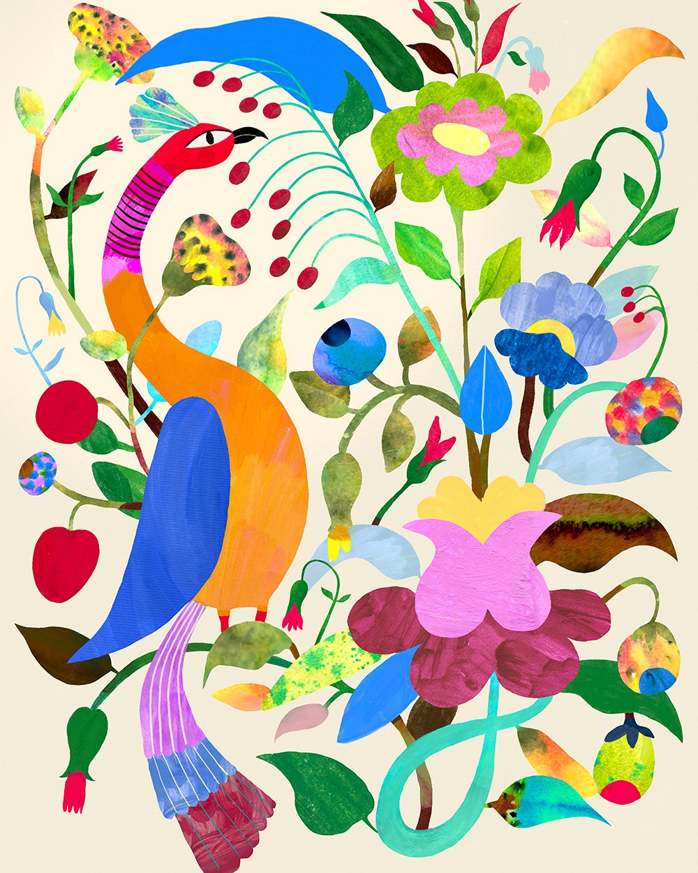 Ця робота — омаж Євмену Пшеченку. Омаж — це творчий жест поваги й діалогу з автором, інтерпретація його ідей у своєму стилі. Мене надихає його поєднання народних мотивів і фантазійної декоративності. У цій роботі я відгукуюсь на його тему птахів і саду, але пропускаю її через власну стиль, ритм і кольори.