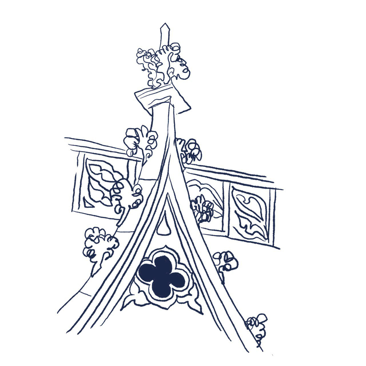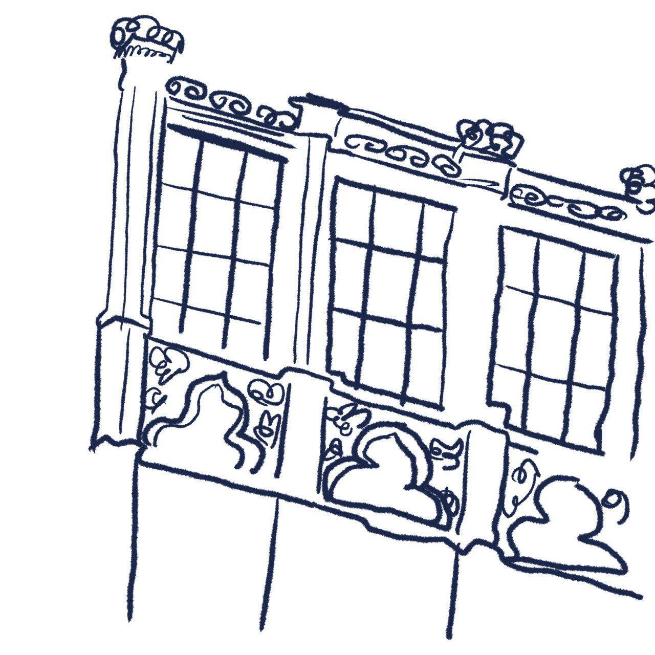 Хустина натхненна величними творами Городецького та українського бароко, я передала дух монументальної архітектури з усієї України. Деякі будівлі майже зруйновані, інші є символічними. Хустка об’єднує різні стилі та епохи в єдину композицію.