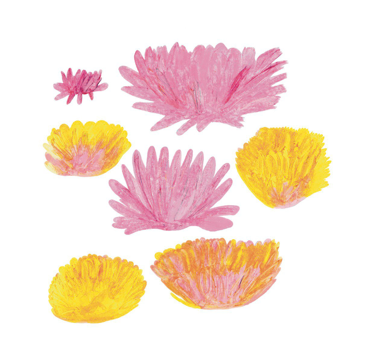 Ілюстрації для цієї колекції були створені вручну за допомогою акрилових фарб, олійної пастелі та чорнила.