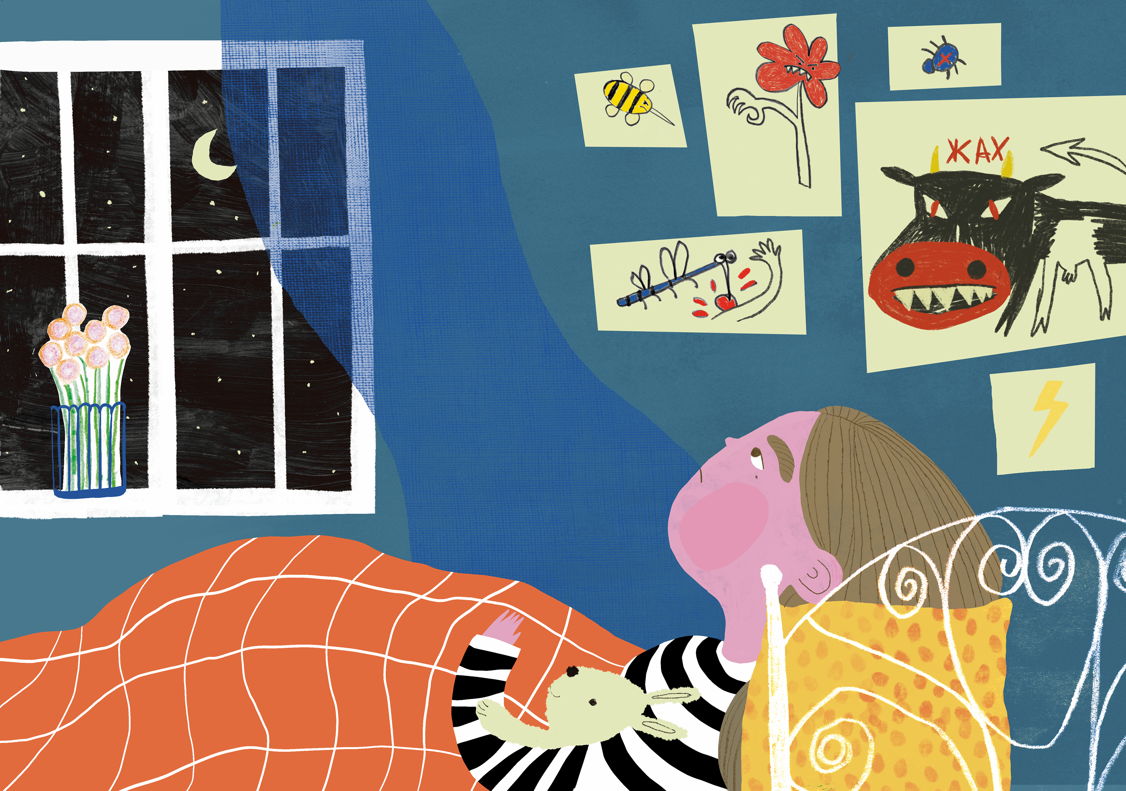 The girl lived in her small world: the familiar boundaries of her room, known objects, no surprises. She was afraid of everything beyond her door—especially nature, where so much was unknown: insects, wild plants, giant cows.