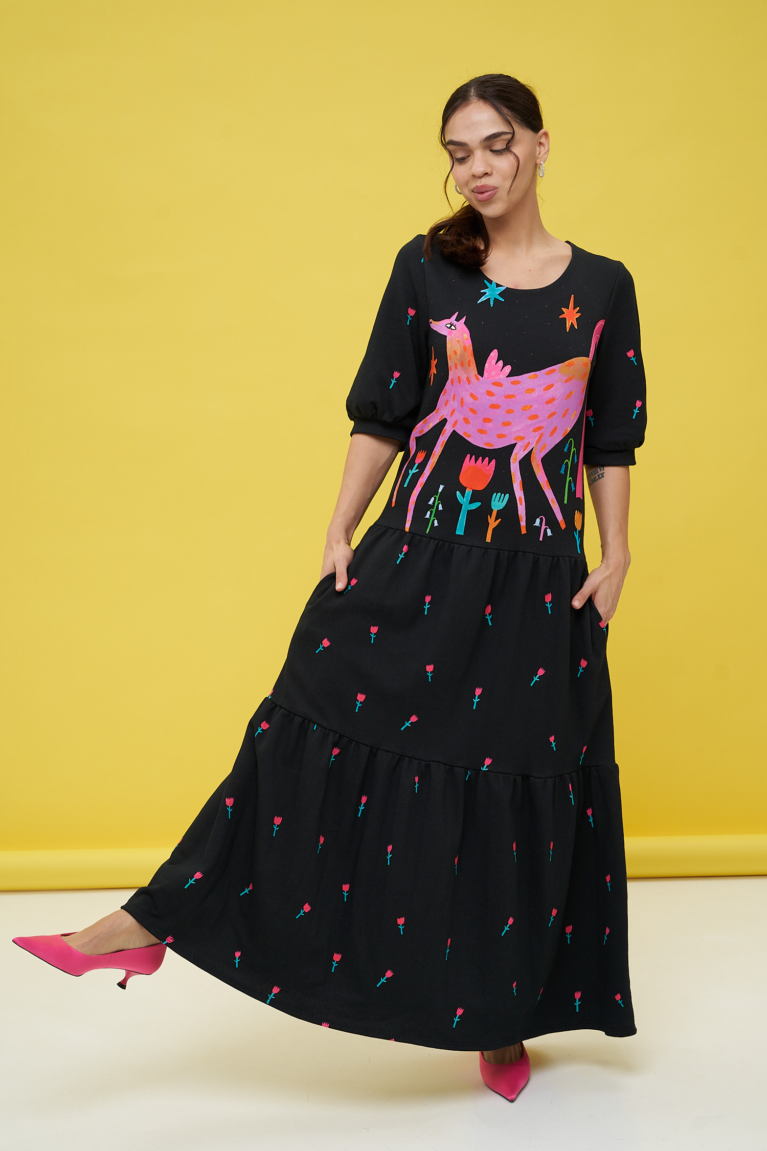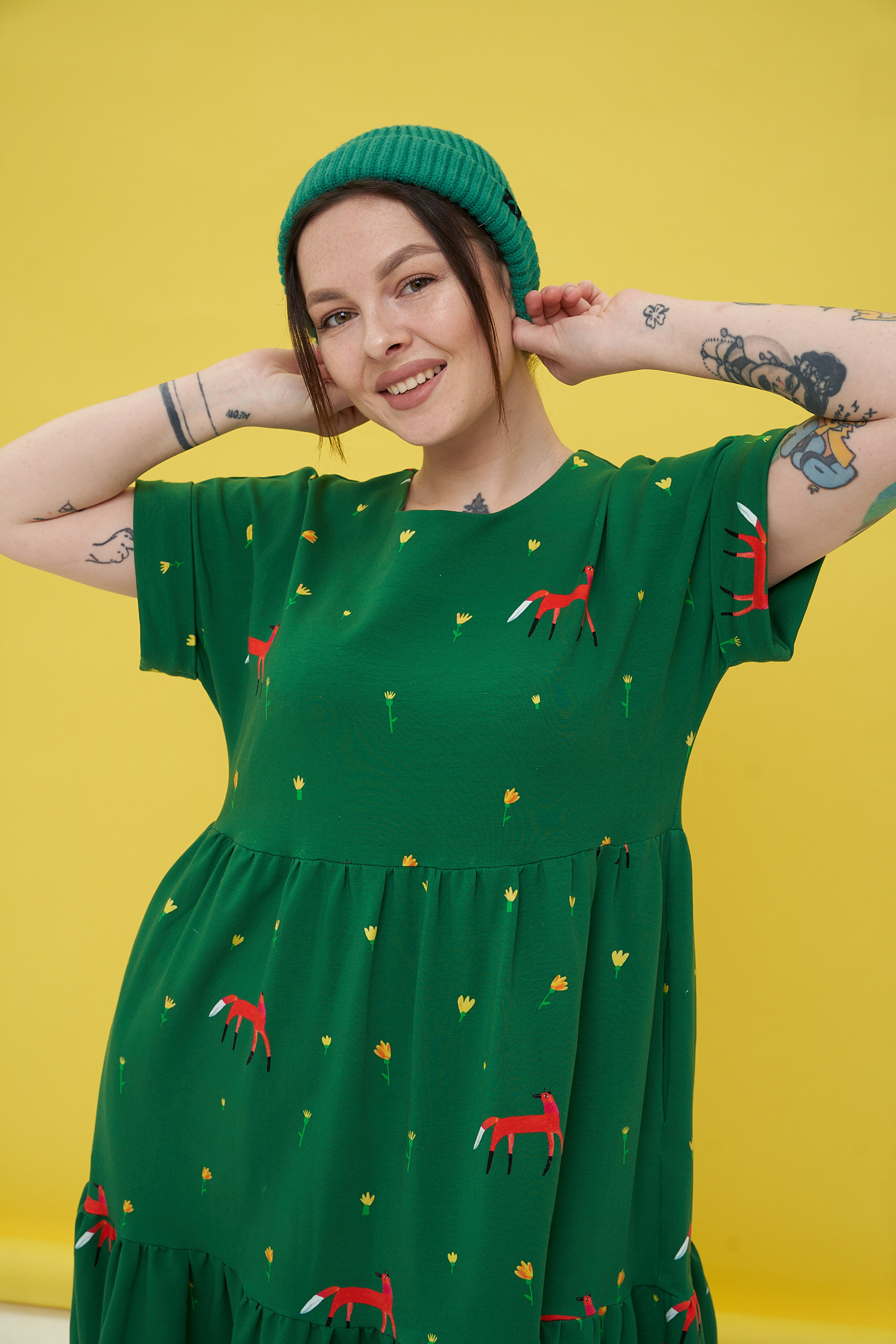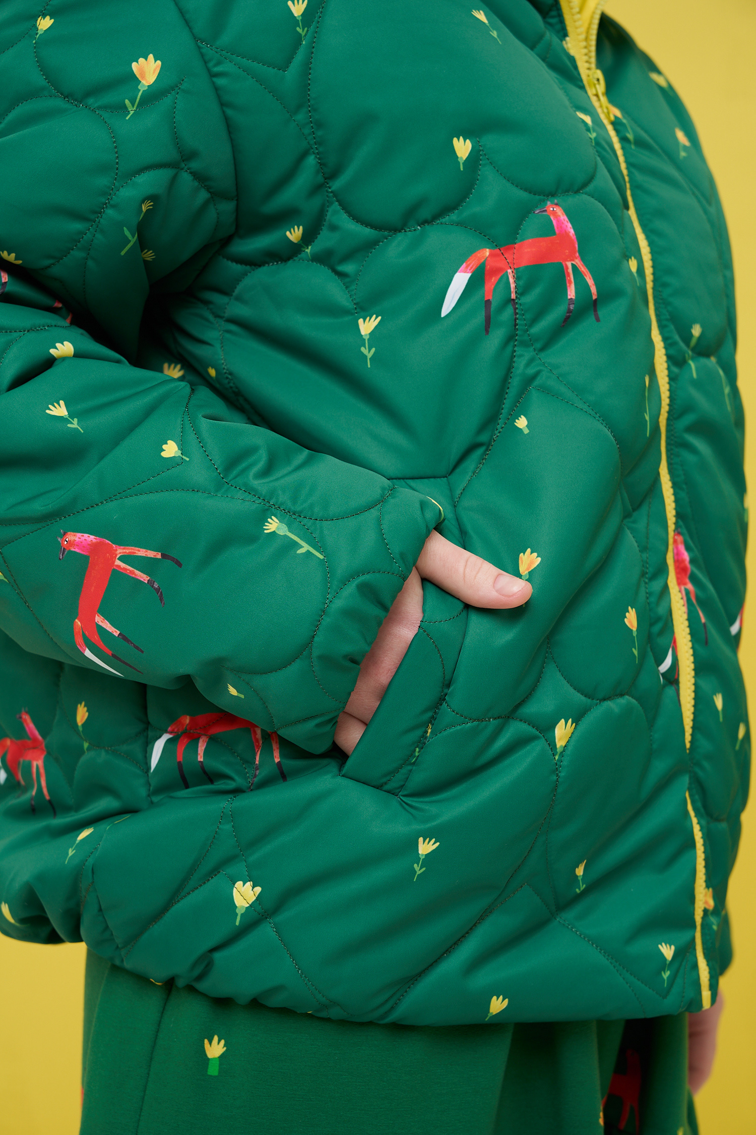 Ця візуальна історія розповідає про міфічного коня та кмітливу лисицю. Їхні образи ожили на різних предметах одягу — пуховиках, сукнях, худі та комплектам. Кожна ілюстрація була створена, щоб додати виробам грайливості, магії та наївності, перетворюючи повсякденний одяг на маленькі носимі історії.